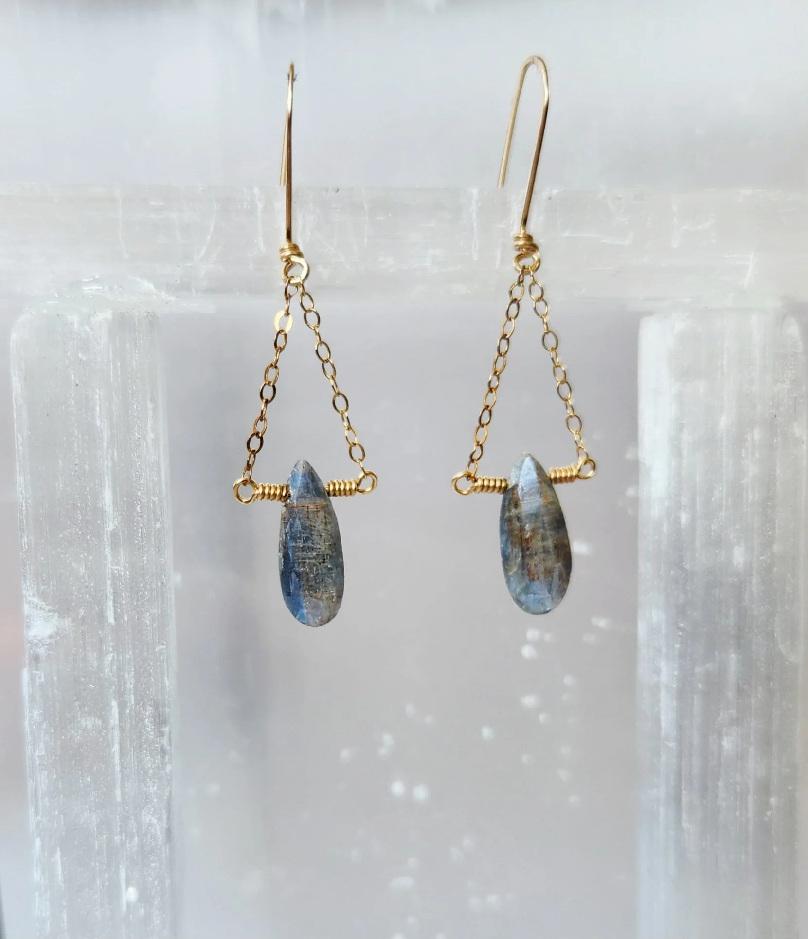 The Astral Forge Mystic Blue Kyanite Earrings Gold Silver