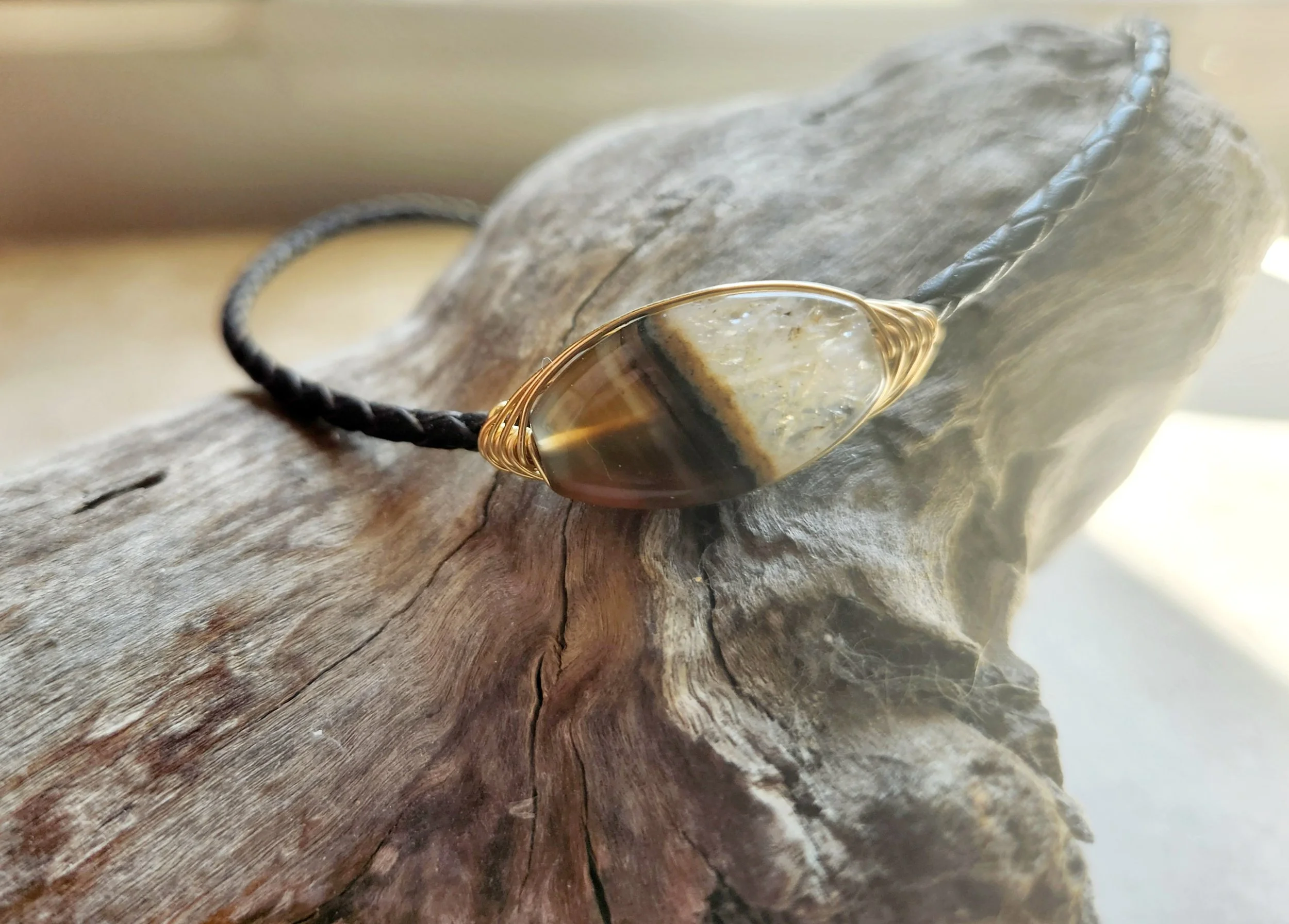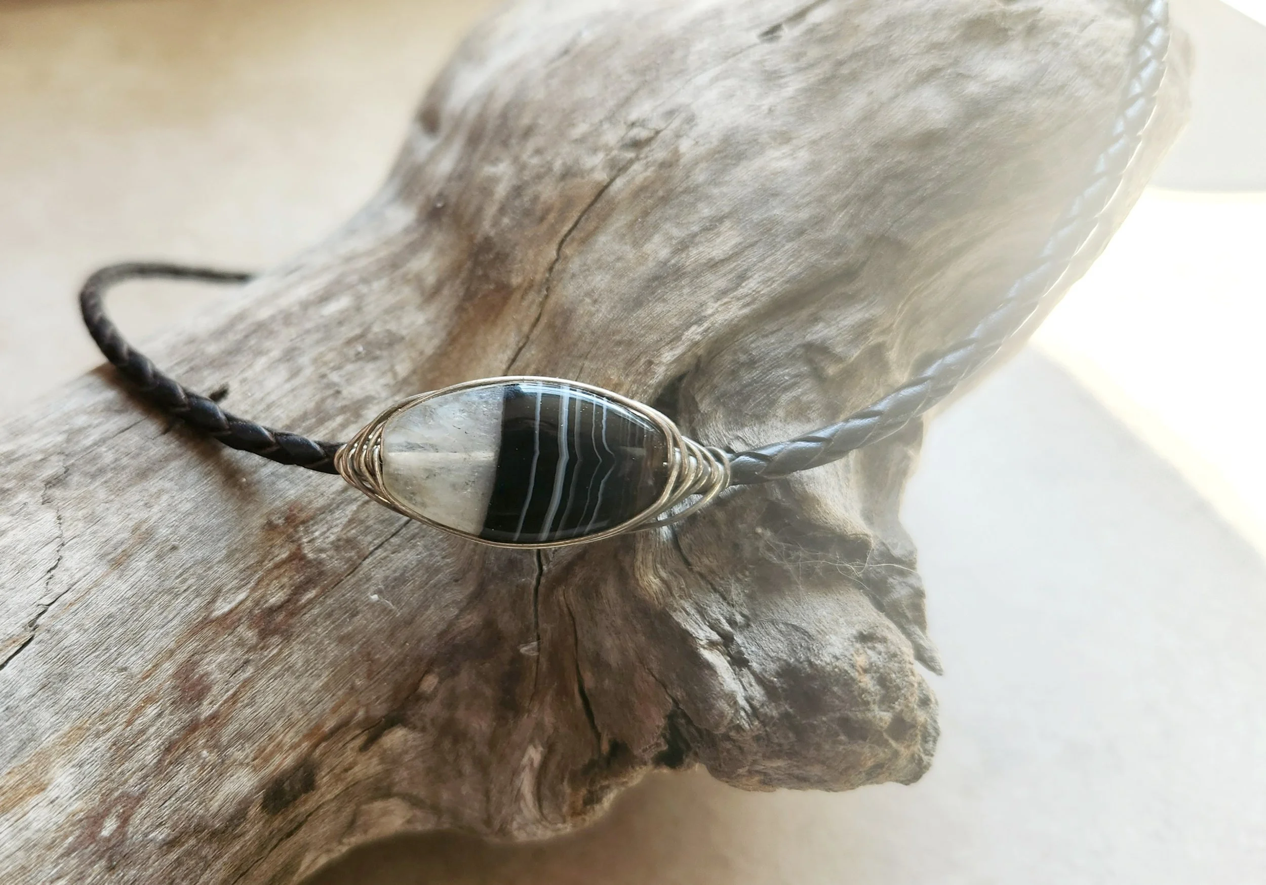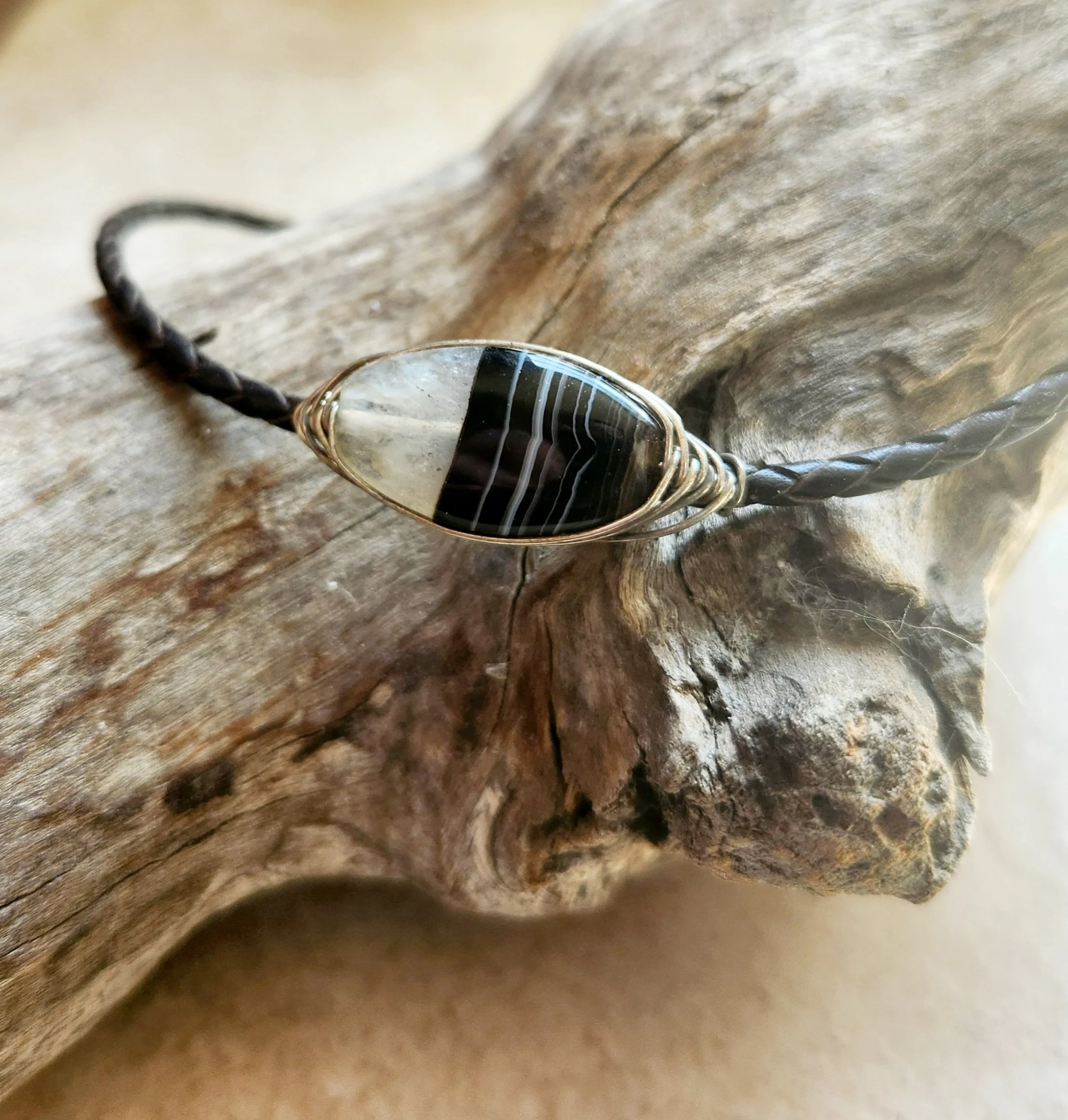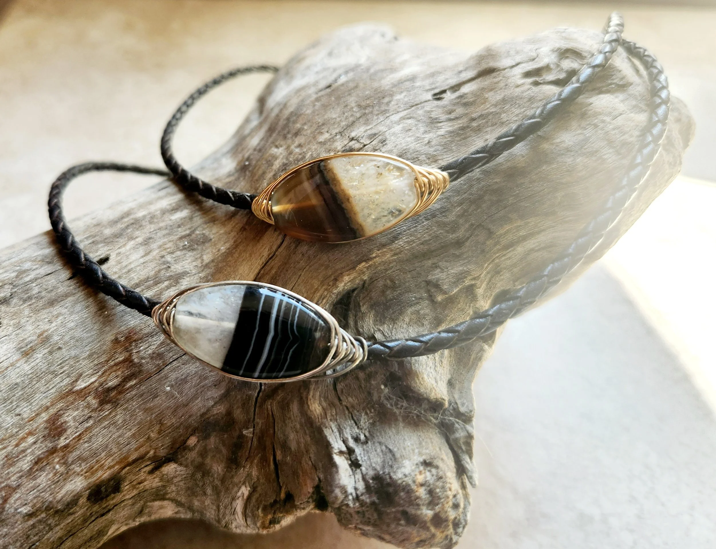KDMENS Tuxedo Agate Wire Wrap and Leather Necklace - Silver - Gold - Unisex - Limited Edition (Copy)